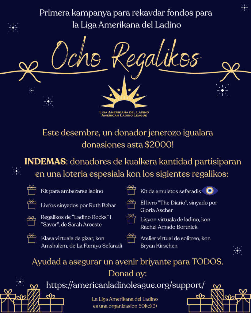 The American Ladino League (ALL) supports the diverse and growing community of Ladino speakers and educators in the United States. We believe in opening Ladino studies to all who are interested. Whatever your background, whatever your goals, our suite of programs and resources will help you on your Ladino journey.